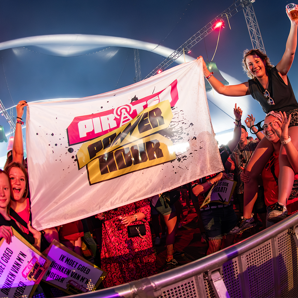 Daar issie! De enige echte PIRATEN POWER HOUR Wapperstof! Gemaakt van dorstig textiel (zuipt zelf niet, maar maakt wel dorstig). Dit is DE vlag voor mensen die liever zuipen dan zeiken en liever draaien dan scrollen. Een vlag van 100x70, gemaakt met liefde door onze Chinese vrienden.. Prachtig voor in je keet, hok, slaapkamer of an de vlaggenmast voor 't huus!